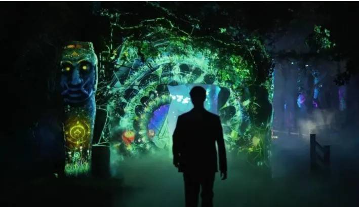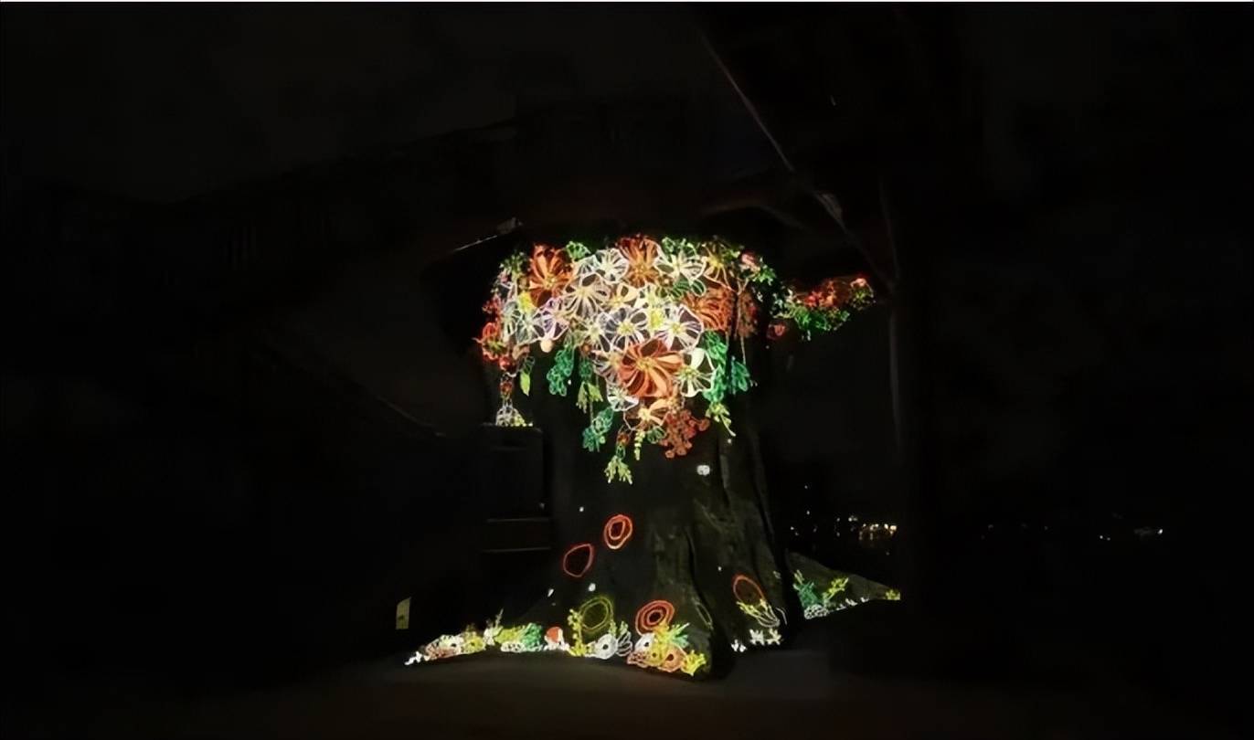 ??呈現(xiàn)給我們的是古??神秘的感覺,以故?的?茶花樹為主,結合燈光、影像、魔法元素、藤蔓 元素以及古樸?息,營造出了?個超?的數(shù)字藝術空 間裝置。