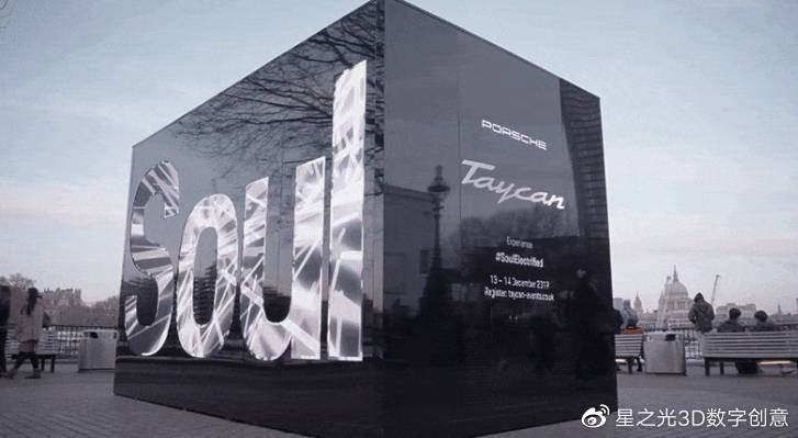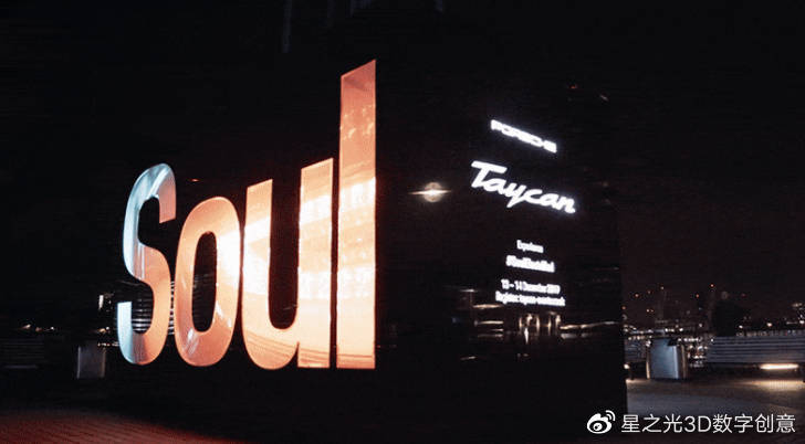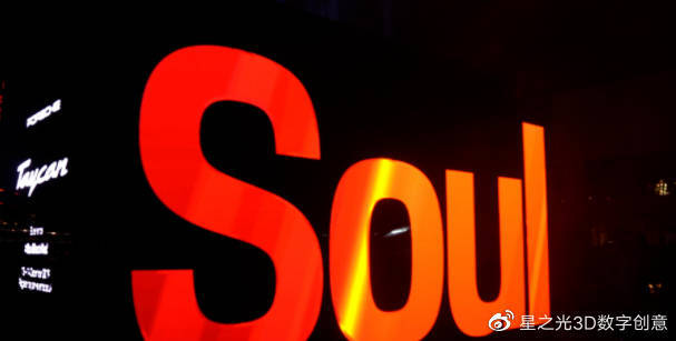 “ Soul”一詞的正面是鏡面鏤空結(jié)構(gòu)配合播放動態(tài)視頻的LED屏幕。