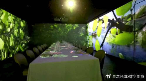 全息餐廳,也就是所謂的5D全息餐廳,摒棄了傳統(tǒng)的裝飾,采用了一種多媒體的方式,利用投影儀將主體材料投射到餐廳的墻壁、地面和餐桌上,實(shí)現(xiàn)了3D視覺(jué)的立體效果。