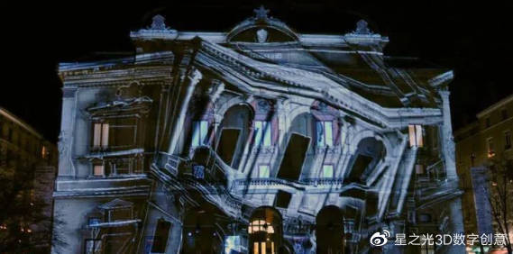建筑投影技術(shù)是利用建筑物自身的結(jié)構(gòu)特征,采用三維數(shù)字動畫技術(shù),將室外投影技術(shù)投射到建筑物上。不同的場景切換,給人一種視覺上的錯覺,身臨其境,如夢如幻。