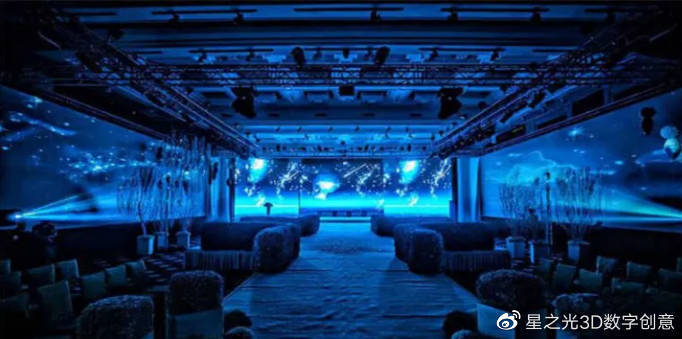 5D全息投影宴會廳,是以三維全息投影技術(shù)為基礎(chǔ),采用環(huán)幕投影、紗幕投影、互動 T臺投影、3D婚紗投影、全息舞美等技術(shù),突破聲、光、電的局限和空間的局限,營造出一種沉浸式的體驗。