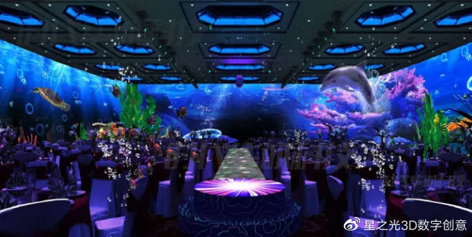 5D數(shù)字藝術(shù)全息光影宴會(huì)廳,采用360°全息立體動(dòng)態(tài)的場景,讓您身臨其境感受到更加生動(dòng)、更加具有視覺沖擊力的場景。