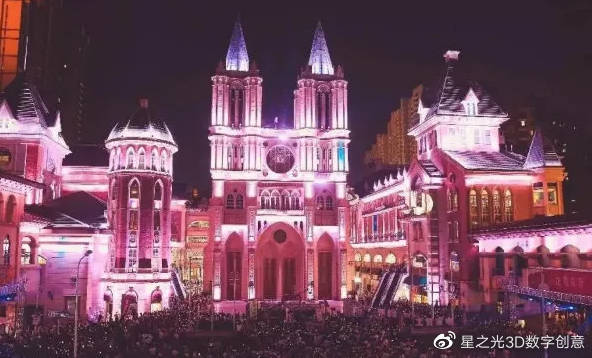 建筑投影利用室外投影技術(shù),利用建筑物的表面作為投射媒介,將3D數(shù)碼動(dòng)畫(huà)與墻壁投影媒體融合,形成三維立體圖像。在燈光的照耀下,墻壁像是“活了起來(lái)”,發(fā)生著千姿百態(tài)的變化。