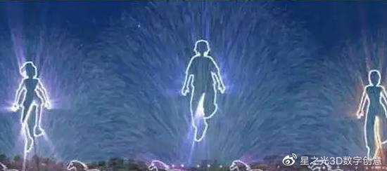 霧幕投影利用霧幕墻作為投影圖像的載體,游客可以自由地在圖像中穿行,實現(xiàn)了虛幻的效果,使觀眾有一種虛幻的、夢幻的感覺。