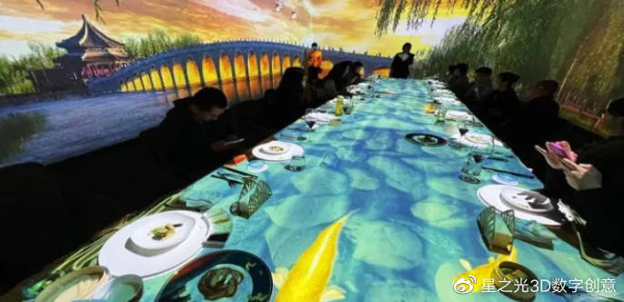 5D全息光影餐廳和一般的餐館不一樣,它是以5D投影技術+裸眼3D技術為基礎,為顧客提供一種沉浸式的體驗。