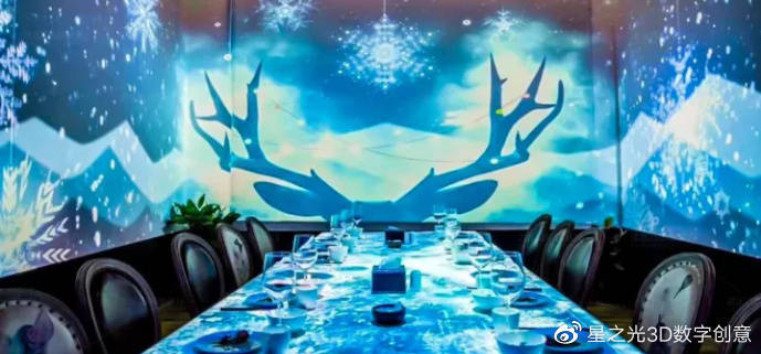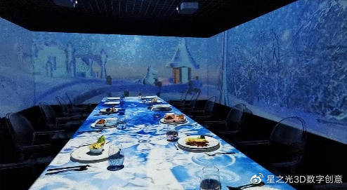 全息光影餐廳運(yùn)用交互式投影技術(shù),將墻面、地面、桌面等進(jìn)行融合,形成光影交互的空間,營造出一種可視化的消費(fèi)場景,為品牌創(chuàng)造價(jià)值與影響力提供了有力的支撐。