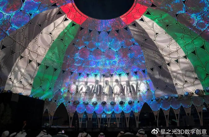 該大樓的穹頂安裝了252臺(tái)投影機(jī),形成一個(gè)360度的沉浸式投影機(jī),讓觀眾在室內(nèi)和室外都能看到,是全球最大的360°投影機(jī)。
