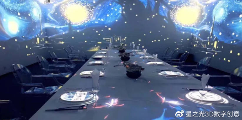 所謂5D全息餐廳就是一種全新的用餐空間,可以隨意穿梭于多種主題場(chǎng)景,不同場(chǎng)景的主題轉(zhuǎn)換,與裸眼3D視覺技術(shù)相結(jié)合,仿若置身于海洋、星空、城堡、花海之中。