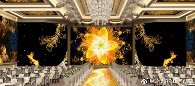 5D全息宴會廳僅僅只需要少量的軟裝,就可以使整個婚禮現(xiàn)場的5D效果更加完美,同時也為新人們節(jié)約了大量的婚禮場地搭建成本。