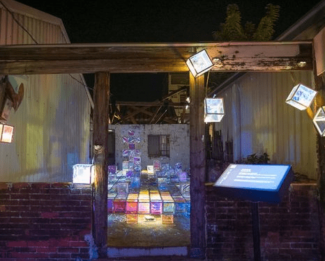 逛到古色古香的鹽水八角樓,八角樓是臺(tái)南鹽水的重要史蹟?shù)貥?biāo),來(lái)訪(fǎng)能欣賞舊時(shí)木造大宅的建筑之美,更特別的是,八角樓也有藝術(shù)作品。這顆不規(guī)則形的燈籠藝術(shù)取名為熒熒微光。